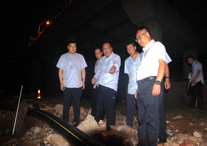 姚禮進一行來到迎佛路查看因佛子嶺水庫泄洪導致管道露出、漂管現場,在汛期災害受損區域現(xiàn)場聽取了關於公司防汛工作開展情(qíng)況的匯報,對災害風險點防汛(xùn)責任人落實、應急處置(zhì)、監測預(yù)警措施、預案體係建設(shè)等(děng)情(qíng)況進行(háng)了檢查。