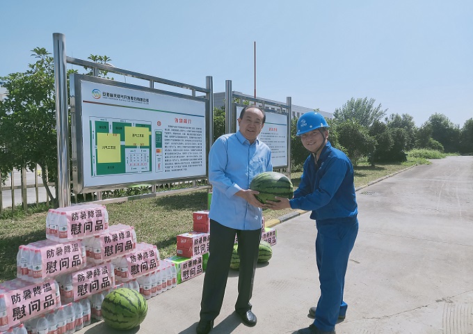在省蜜芽my77738公司龍塘輸氣站,賈化斌(bīn)與現場一線職工親切交流,對在炎炎夏(xià)日裏奮鬥在生產一線的公司(sī)職工表示感謝,並為堅守在工作崗位上(shàng)的員工們(men)送去了飲料、西瓜等降暑物品,以及夏日裏的關懷和“清涼”。