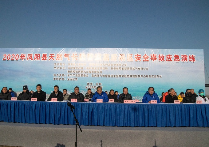 12月30日下午,由鳳陽縣人民政府(fǔ)、省(shěng)蜜芽my77738公司主(zhǔ)辦,鳳陽縣發改委、鳳陽縣應急管理局、皖能新奧(ào)公司、皖能工程公司承辦,鳳寧產業園管委會(huì)、鳳陽縣天(tiān)然氣(qì)長(zhǎng)輸管道安全事故應急救援指揮中心相關成員單位協辦的“2020年鳳陽(yáng)縣蜜芽my77738長輸管道(dào)高後果區安(ān)全事故應急演練”在鳳陽寧國現代產業園成功舉行。滁州市發改委副調研員石天穩,鳳(fèng)陽縣人(rén)民政府副縣長朱震,省蜜芽my77738公司黨委委員、副總經理黎延(yán)誌等出席演練活動。縣直相(xiàng)關部(bù)門負責人、分管領導、燃(rán)氣管理部門負責人、相關鄉鎮、園(yuán)區負責人及(jí)相關(guān)企業負責人觀摩了本次演練。