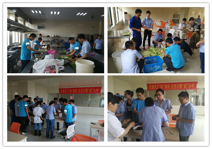 下午2:30,在壓(yā)縮公司總經理徐後勇宣布(bù)包粽子(zǐ)開始,活動拉開序幕,包粽子在食堂大廳有條不紊的(de)進行(háng)著,修建粽葉、包粽子、剪繩子(zǐ)、裝粽子(zǐ)……,像是車間流水(shuǐ)線,但是這裏充(chōng)滿了大家(jiā)的(de)歡笑聲和討論(lùn)聲。此時,廚房間也忙成一片,洗菜、切菜、配菜、配料、燒菜……,不是專業卻勝(shèng)似專(zhuān)業(yè),桌上一盤盤的熱菜——紅(hóng)燒排骨、紅燒肉、木耳肉片、家常小炒(chǎo)、涼拌黃瓜、土豆牛肉……,看者目(mù)不暇接,聽(tīng)著垂(chuí)涎欲滴!大(dà)家甚至忘了廚房間的溫度,忙著交流燒菜的心得,廚房間充滿著熱氣、笑聲、溫度,其樂融融。