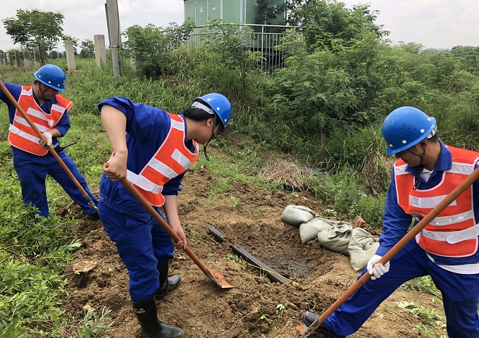 演練從10點20分正式開始。因連日暴雨,潁上(shàng)縣緯四路工投食堂南側蜜芽my77738管道遭雨水衝刷塌方露管(guǎn)。巡線員祁雲輝發現險情,第一時間上報公司,隨即開展應急搶險行動,搶險隊趕赴現場,控製(zhì)事故管段閥門,隔離警戒。確認管道未(wèi)受損後,抽取塌方處積水,夯實管道下方(fāng)土基,進行回填作業。10點55分搶險結束。