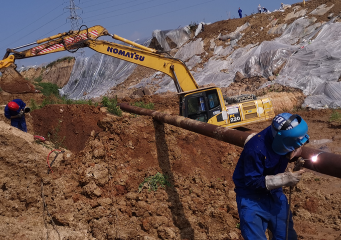 6月25日,公司(sī)成立管道搶險指揮小組,明確各生產口職(zhí)責(zé),敲定改線方(fāng)案,細化(huà)安全措施。施工方案確定後,維搶修中心緊急采購管材(cái),於(yú)該(gāi)日上午十時進場,改線作業有序(xù)進行。經安全監督和安全措施的落實,11名維修人員立即開始定位放線、布管、打磨坡口、組對焊接、管溝開挖、下管、管溝回填、壓力試驗、不停輸封堵(dǔ)等(děng)一係列工序,經過九天九夜奮戰,管道對接施工作業順利完成(chéng),經72小時試運行,管道恢複安全平穩輸氣。