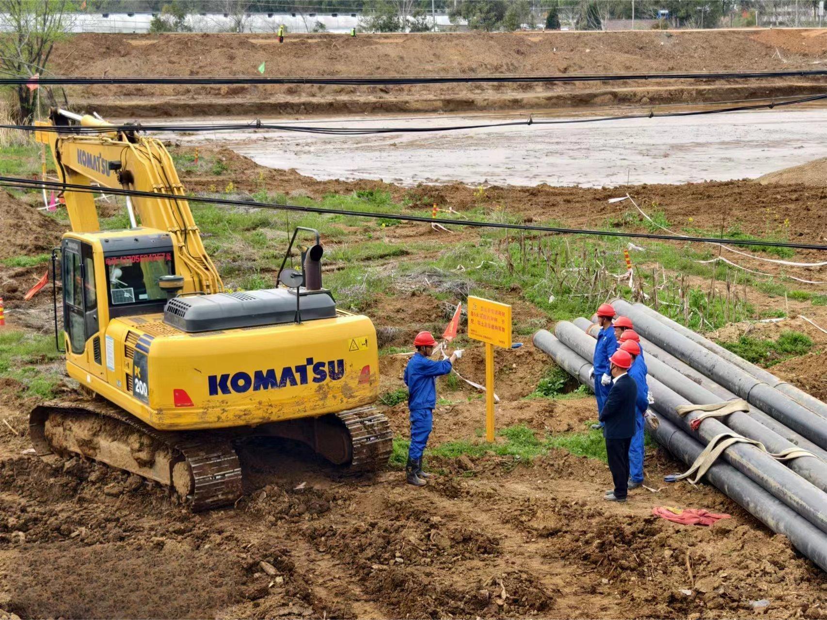 5月7日,省充換電(diàn)公司皖小能先鋒隊員和施工人(rén)員在皖能綜合能源港霍山迎賓大道站項目建設現場巡查、清理站場周圍臨時排(pái)水溝。